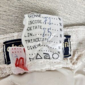 Vintage 80s, Tailor Made in France, Viscose Linen Cotton Blend, YKK zip, Excellent Vintage Condition, Size 40, fits like a MP, Low Rise Waist-16, Length-36, Inseam-26.