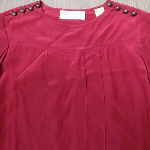 80s Vintage Designer Pleat Red Silk Crepe de Chine Long Sleeve Loose Fit Blouse