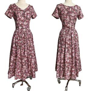80s Vintage Laura Ashley Dress short sleeve flared skirt floral print preppy.