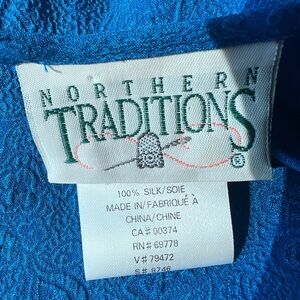 80s Vintage Northern Traditions Womens Blue 100% Silk Flowy Top Small