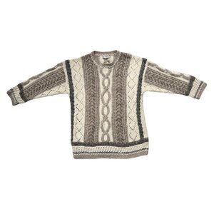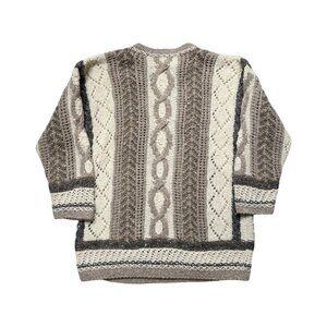 80s Vintage Oversized Grandpa Sweater Cableknit Crochet Knitted Pattern Stripe.