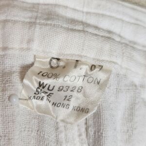 Vintage 1980s, 100% Cotton Linen-like material, Button Fly, Piping on Front Seam waist and pockets, Excellent Vintage Condition, Size 12, fits like an M, Waist-15, Length-37, Inseam-25, Rise-13.