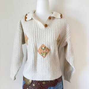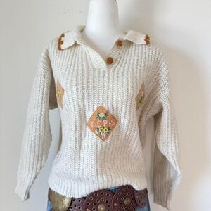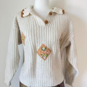 80s cottagecore glittery collared sweater with patchwork details knitwear