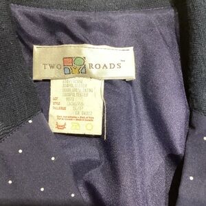 This vintage 80's set consists of a jacket and pants in a blue color, made of polyester material. The brand is Two Roads, and the size type is regular. This set is perfect for women who are looking for a unique and retro outfit from the 1980s, with the jacket and pants offering a coordinated and stylish look. Perfect for adding a touch of nostalgia and vintage flair to any wardrobe.