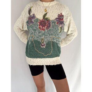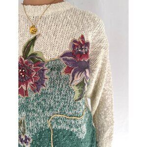80s vintage floral embroidered applique fairy grandma long sleeved knit sweater