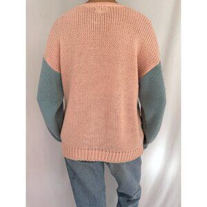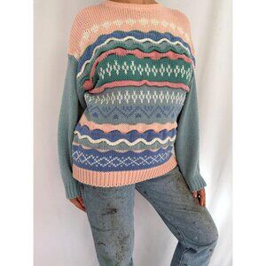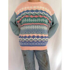 80s vintage pink blue pastel striped textured grandma cottage ugly knit sweater
