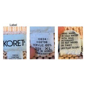 this is an adorable vintage knit sweater "made in Korea" by Koret from the 80s in the most adorable pink, blue and white pastel shades – the perfect grandmacore cottage vibes! the long sleeved sweater features 3D textured frilly wavy lines embroidered across the front, all in different colors and different levels of thickness. there are abstract nordic patterns knitted in white in between some of the frilly layers, which add to the maximalist look. the crewneck sweater is a solid pink color on the backside with blue long sleeves, and it is ribbed on the neck, sleeves and bottom hem. the sweater is made of a loosely woven knit with medium thickness, and the acrylic is cozy and warm with some stretch, and there is bit of an itch (so be aware if you have sensitive skin).