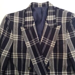 80s vintage **HOST PICK** window pane plaid double-breasted NAVY and WHITE wool jacket