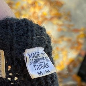 Black with abstract blocks and swirls of fuchsia, blue, white, silver and turquoise. Stretch cuffs and hem. Composed of acrylic, wool, rayon and “other” fibre. Patches of pattern are luxuriously soft and fuzzy similar to angora. One strip of silver across the torso is a metallic coloured and textured textile. No rips or tears. Only discolouration noted is to the brand label. Pet and smoke free home.