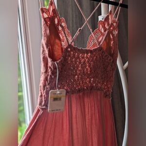 82.Nwt Free People Elegant Lace Trim Pink Dress
