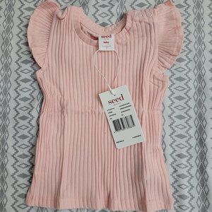 Seed Heritage pink two piece outfit. sleeveless shirt and shorts. 6 - 12M. NWT