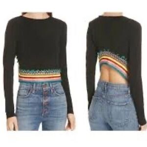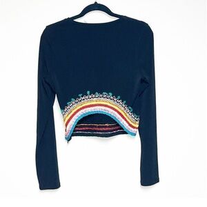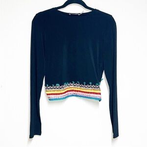#83- Alice + Olivia Delaina Embroidered Cropped Top Black/ Multi Sz L