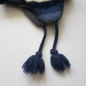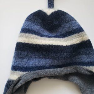 Blue, grey, white Stripe woolen Earflap Hat with polar fleece lining