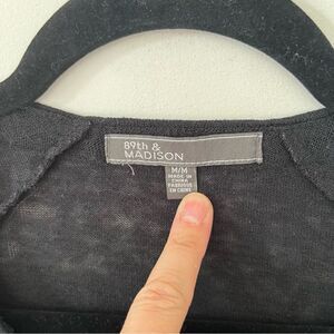 89th & MADISON, black t-shirt, cap sleeve top, white embroidery, embroidered shoulders, contrast stitching, casual chic, soft knit tee, elevated basic, everyday top, classic black tee, feminine details, minimalist wardrobe, lightweight fabric, flattering fit, easy layering piece, versatile casual, capsule wardrobe essential, comfy and stylish, polished casual, Poshmark fashion, modern basic, wear-anywhere tee.