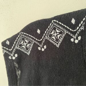 89th & MADISON Black Cap Sleeve White Embroidered Shoulders T-Shirt