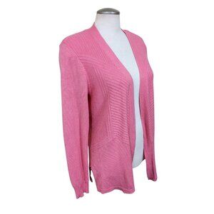 89th & Madison Coral Pink Womens Cardigan Sweater Size L Soft Open Front Ribbed