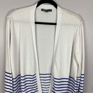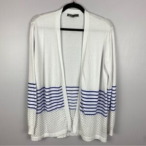 89th & Madison Open Front Rayon Blend Striped Cardigan Large White