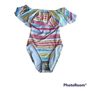 💫8×host PICK💫❤Vince Camuto one piece striped swim suit off-shoulder