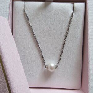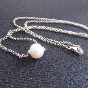 8mm Floating Pearl, Necklace, 19.5", 925 Silver Cable Chain,
