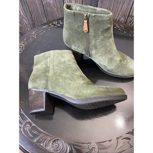 9 1/2, Rockport Cobb Hill ankle boots in green suede. Purchased but never worn.