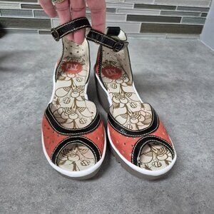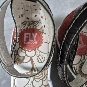 9 Fly London Ydel Perforated Leather Open Toe Sandal Shoe Wedge