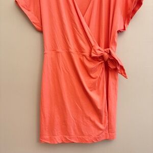 $9🎅🏼 Joe Fresh Vibrant Coral Drop Shoulder T-Shirt Cotton Wrap Dress