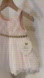This beautiful baby dress features a delicate pale pink bodice with a flowing multilayered ivory tulle skirt, perfect for special occasions. The intricate detailing adds a touch of elegance. Satin bloomers included. Very sweet set 🤍