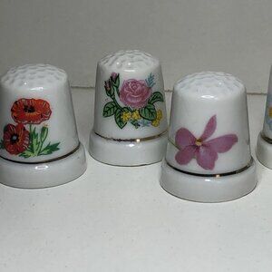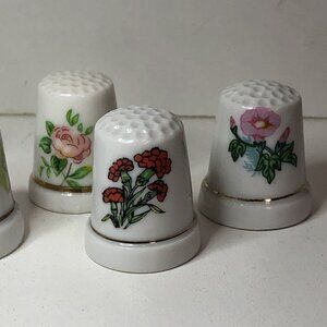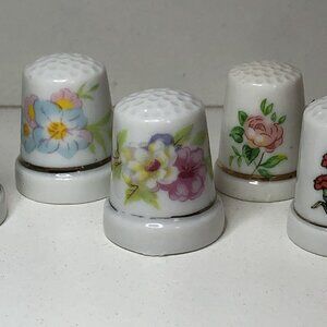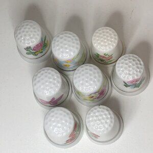 9 Vintage Thimbles Porcelain Ceramic Flowers Floral Design Collection (2) SDJ