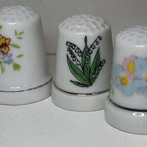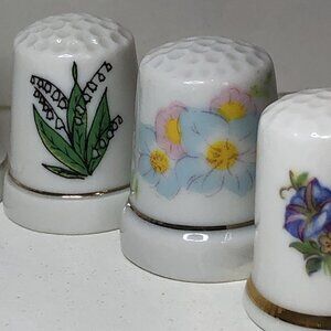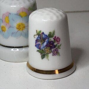 9 Vintage Thimbles Porcelain Ceramic Flowers Floral Design Sewing Collection SDJ
