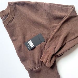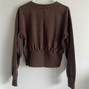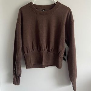 90 DEGREES BY REFLEX CHOCOLATE BROWN CROP SWEATER LONGSLEEVE WORKOUT FITNESS GYM