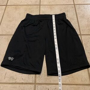 These are a pair of black athletic shorts from the brand 90 Degree By Reflex. They are perfect for workouts, running errands, or casual wear.