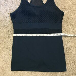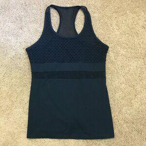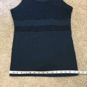 Very good preowned condition, dark blue turquoise, sleeveless, racerback yoga tank top by 90 Degree By Reflex. Sports an attractive, breathable and comfortable mesh.