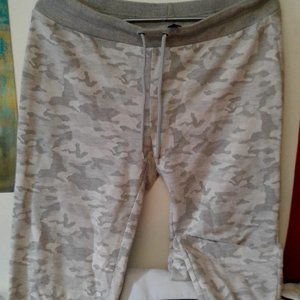 Gray and white camo print sweats