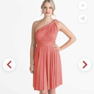 Two (2) Sakura Midi Convertible Infinity Dresses in peach pink coral, Originally $149 + tax each. Listed price of $100 is for both. Great for bridesmaids!