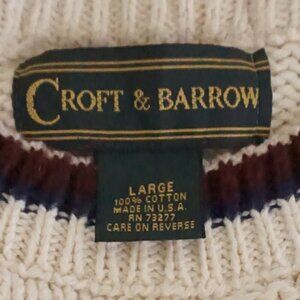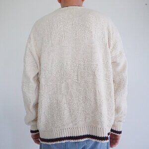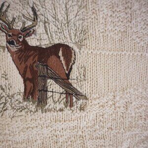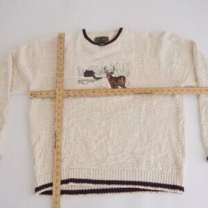 90S Craft & Barrow Cream Embroidered Cabin Buck Cotton Knit Crewneck Sweater L