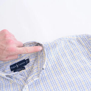 90S Ralph Lauren Yarmouth 100% Cotton Pinpoint Oxford Blue & Yellow Plaid Shirt