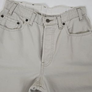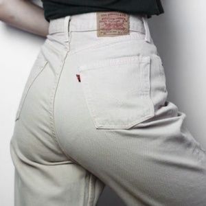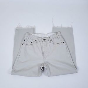 90’s 801 Khaki Black Tab Levi's ivory denim frayed jeans high rise wide leg