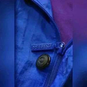 90s ADIDAS Neon Blue Purple Nylon Anorak Windbreaker Track Jacket Hoodie L XL