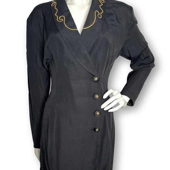 90s Amoretti Button Front Dress with Gold Detailing | Vintage Amoretti Black Dre