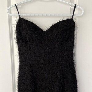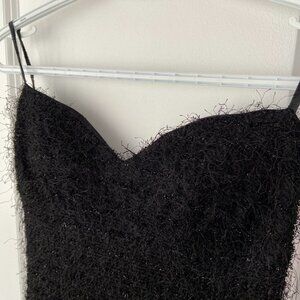 90s Black Sleeveless Fuzzy Dress With Sweetheart Neckline by G.L.A.M (M)