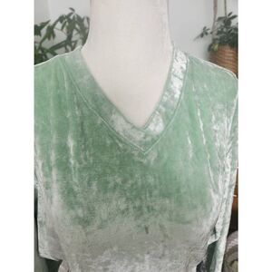 90s Cotton Ginny Mint Green Velour Crushed Velvet Long Sleeve Top Plus Sized 2x