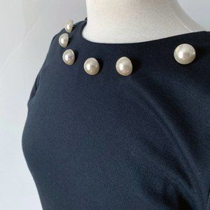 90s Does 50s Midnight Blue Dress with Pearl Buttons Size S