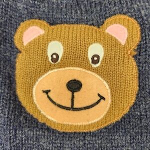 Charcoal Blue Knit Toque Beanie with large Embroidered Cartoon Animal Bear Patch on the front.