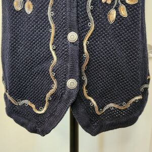 90s Embroidered Sleeveless Knit Cardigan Vest