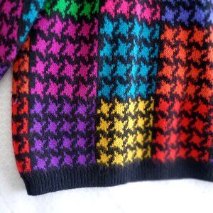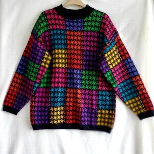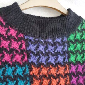 90s Fall Wool Sweater Women's Size Medium Multi-colour Houndstooth Cozy & Warm