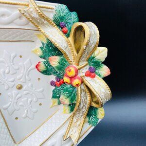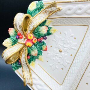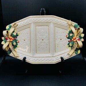 90s Fitz and Floyd Snowy Woods Hostess Serving Tray Christmas Divided Charger