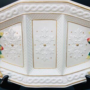 Elegant octagonal squared decorative divided serving tray by Fitz and Floyd from the Snowy Woods Series.