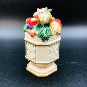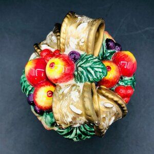 It is beautifully hand-painted, with a gold bow and holiday foliage.