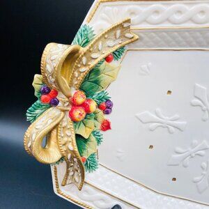 90s Fitz and Floyd Snowy Woods Serving Tray Christmas Decorative Ceramic Platter