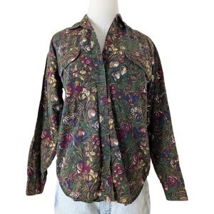 90s Floral Button Down Blouse Long Sleeve Vintage Baggy Relaxed Fit Oversized
